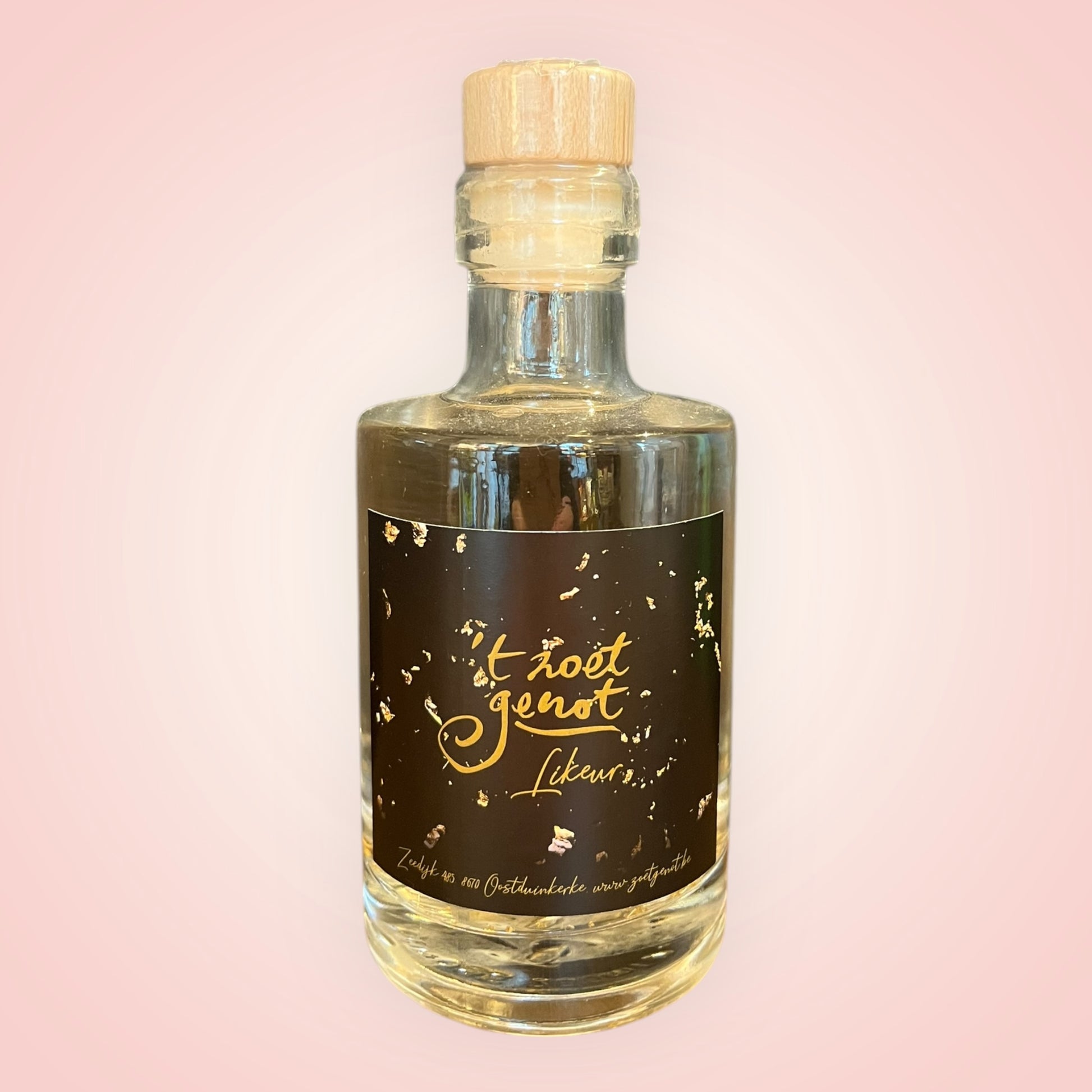 Geniet van de luxe van ’t Zoet Genot, een verfijnde likeur met de zoete smaak van maraschinokersen en een vleugje goud. Het bladgoud dat sierlijk door de fles dwarrelt, wordt gezien als een symbool van geluk en maakt elke gelegenheid bijzonder. Perfect voor liefhebbers van een elegante en unieke smaaksensatie.