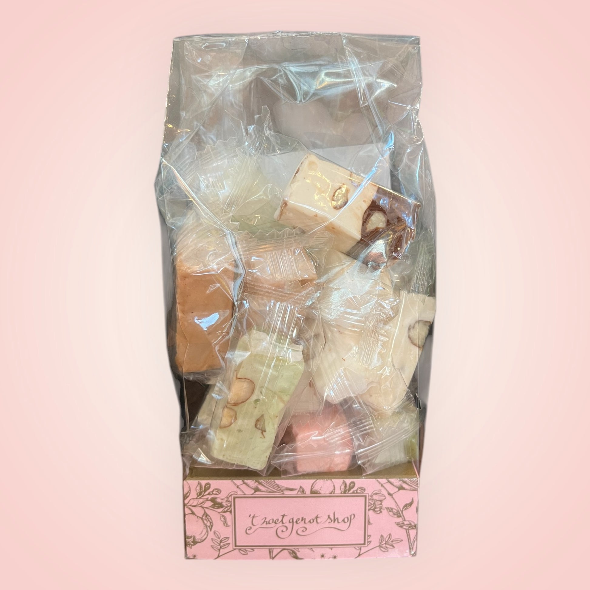 Heerlijke zachte nougatblokjes verrijkt met amandelen, in de smaken chocolade, pistache, aardbei, mokka en natuur. Individueel verpakt voor ultieme versheid en perfect om te delen of cadeau te geven. Geniet van de premium kwaliteit van Carlier 200gr