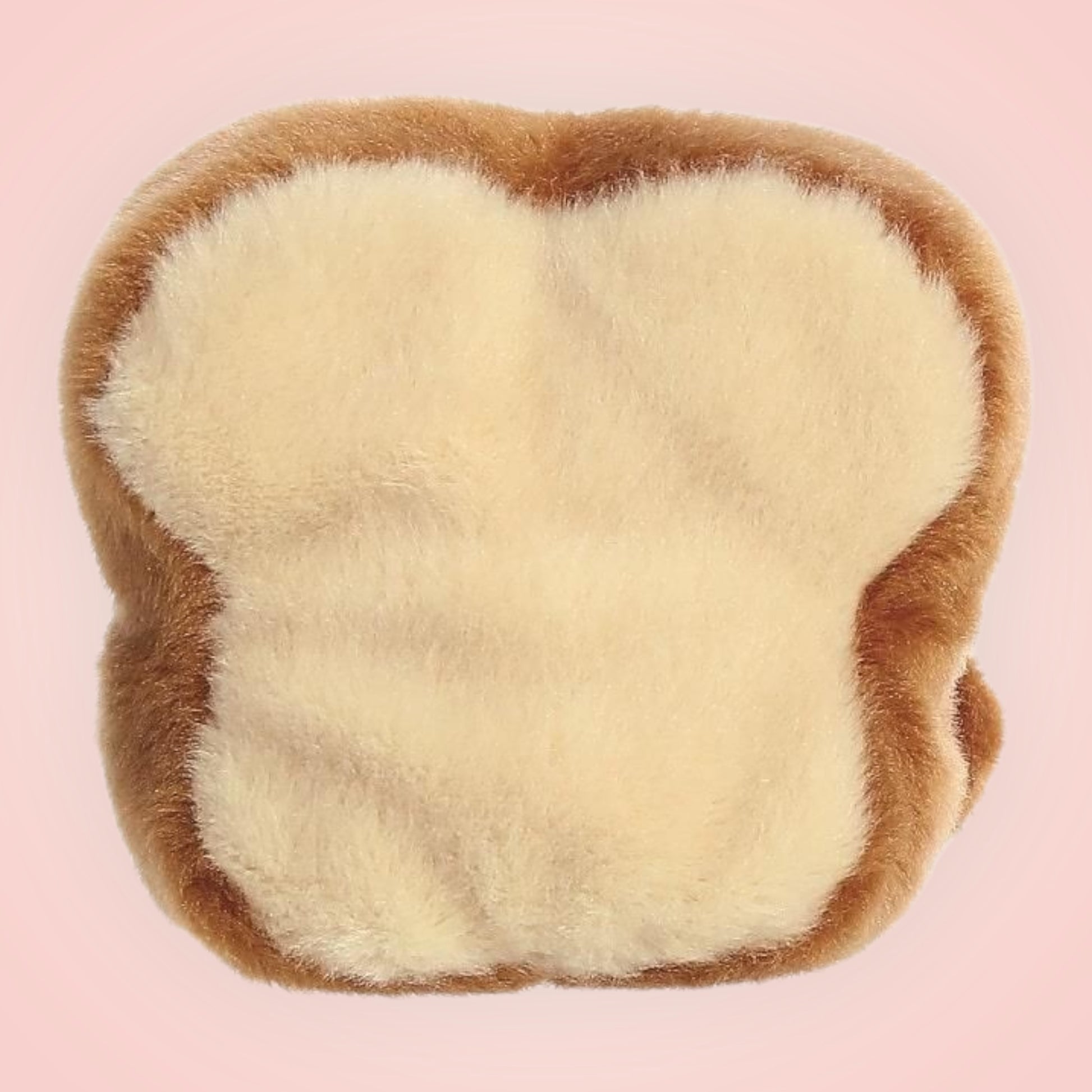 Palm Pals toast met boter 13 cm. Deze knuffel past in de palm van de hand, is gevuld met bonen waardoor het super zacht en squishy aanvoelt. Verzamel ze allemaal
