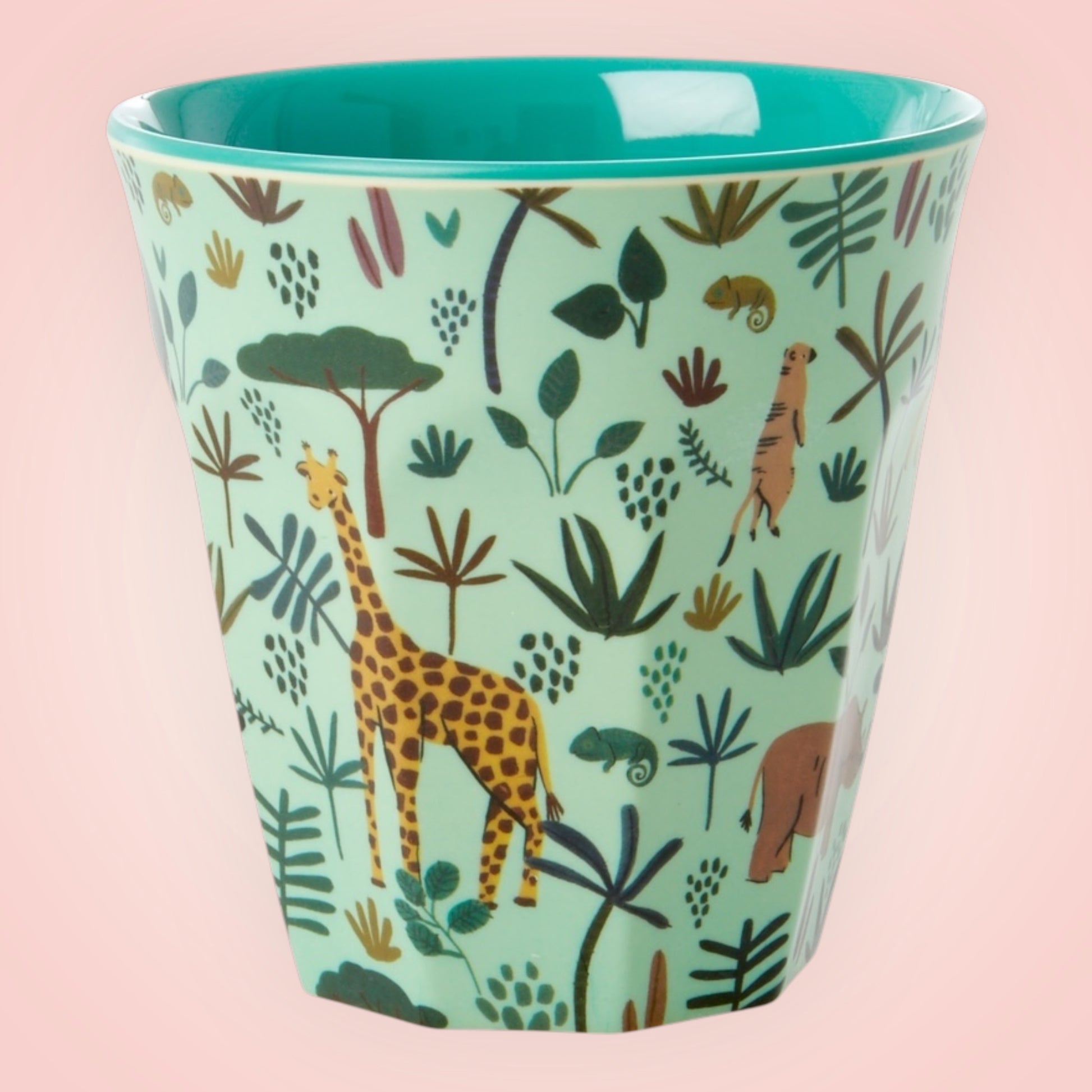 De populaire kleine melamine RICE beker voor kinderen - met een schattige giraf op een blauwe achtergrond. De beker is een van onze favoriete producten ... Gebruik de beker voor van alles en nog wat - als drinkbeker, voor snacks of voor het bewaren van kleine spulletjes, neem de beker mee naar een picknick of doe er wat mooie bloemetjes in. Wees creatief en gebruik en naar je eigen behoeften. Only the sky is the limit