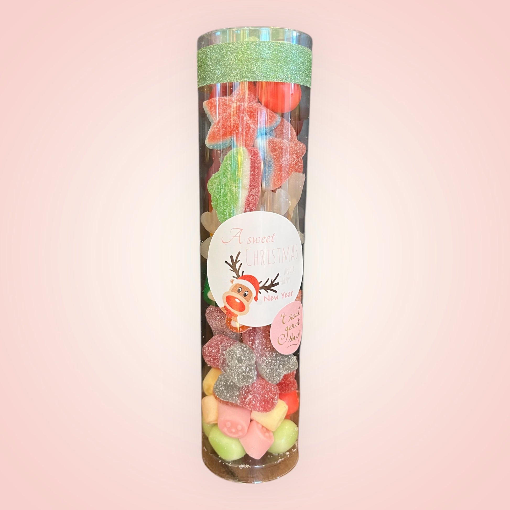 Vier het eindejaar met een luxe snoepkoker gevuld met feestelijk schepsnoep. Een heerlijke mix van winterse lekkernijen en kleurrijke zoetigheden, perfect voor gezellige momenten en feestelijke tafels. Ideaal als cadeau of om samen van te genieten tijdens de feestdagen.