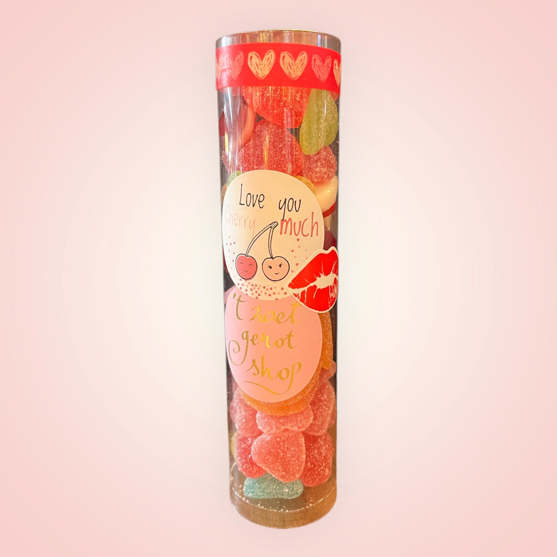 Deze pot bevat een verzameling van rode en roze snoepjes, alsook hartjes. Perfect om te delen, cadeau te doen of gewoon zelf van te genieten. Ideaal voor elke zoetekauw