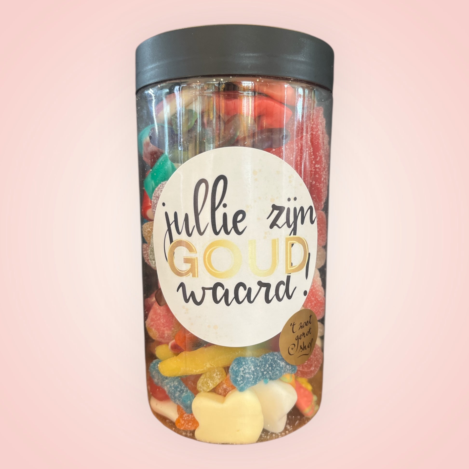 Verras je medewerkers met een heerlijke snoeppot vol lekkernijen. Verkrijgbaar in drie formaten, gevuld met een mix van zoetigheid waar iedereen blij van wordt.