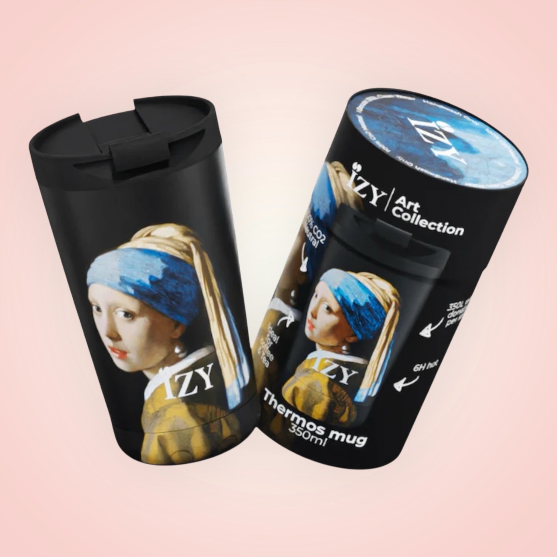 Speciaal voor kunstliefhebbers: de IZY Mugs x Meisje met de Parel uit de Art Collectie. Of je nu een wandeling maakt, een dagje onderweg bent of gewoon een moment voor jezelf neemt: met deze unieke mug geniet je van je favoriete warme drankje én laat je jouw liefde voor kunst zien. Laat je inspireren door Vermeers meesterwerk, stijlvol vertaald naar een mug voor elke dag.